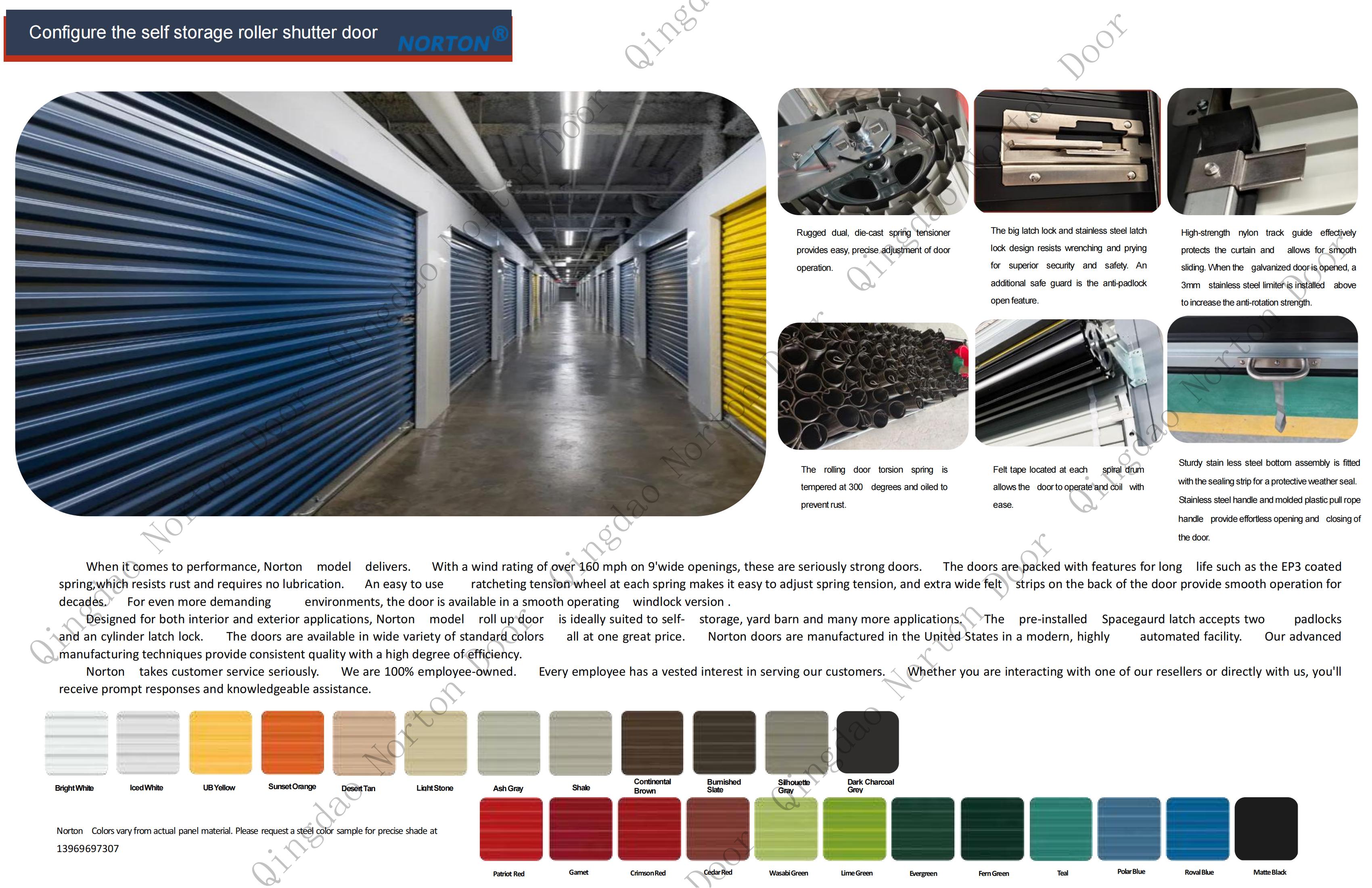 Qingdao Norton Door Technology Co., Ltd. priorise la satisfaction du client, offrant des services sur mesure pour un verrouillage fini de l'unité de stockage personnalisée pour l'atelier d'entrée Villa Outdoor Rolling Open. De la conception à l'installation et à la maintenance, nous maintenons un contrôle de qualité rigoureux pour assurer des produits et services de premier ordre. Notre engagement envers l'excellence et l'approche client-centriste nous distinguent dans l'industrie.