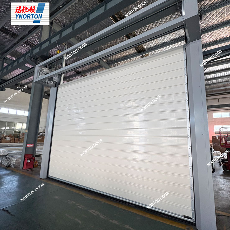 La porte industrielle rigide en spirale de haute qualité fabriquée par Norton représente une solution de porte industrielle de pointe, réputée pour ses vitesses d'ouverture et de fermeture rapides, ses capacités d'étanchéité exceptionnelles et son isolation très efficace.